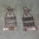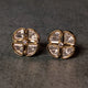 Ear studs in rose gold tint with sparkling stone between two black squares